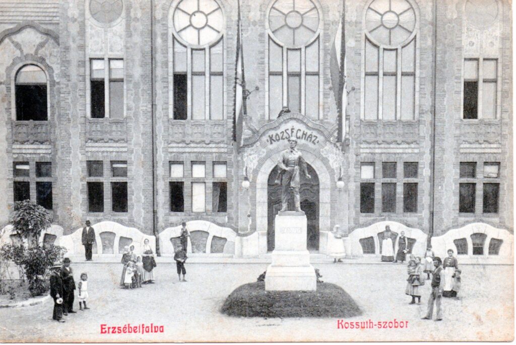 A mi Kossuth-szobrunk avatásakor 1909-ben a tér, amin áll egészen másképp festett. A földszintes kis házak között grandiózusnak hatott az alig három éve emelt kéttornyú szecessziós községháza. A falakon tarka, tulipános díszítés futott végig, melyet a helyben lakók annyira csúnyának tartottak, hogy hamarosan lefestették. A szobor ünnepélyes leleplezésén Kossuth fia, Kossuth Ferenc kereskedelemügyi miniszter mondott ünnepi beszédet. Olyan népszerű volt ezidőtájt a Kossuth-szobrok állítása, hogy éppen ugyanazon a napon, mikor az országban a 60. Kossuth-szobrot átadták itt Erzsébetfalván, a Máramaros megyei Szinérváralján is avattak egyet. Nagy megtiszteltetés volt tehát, hogy a miniszter az erzsébetfalvai ünnepséget választotta.