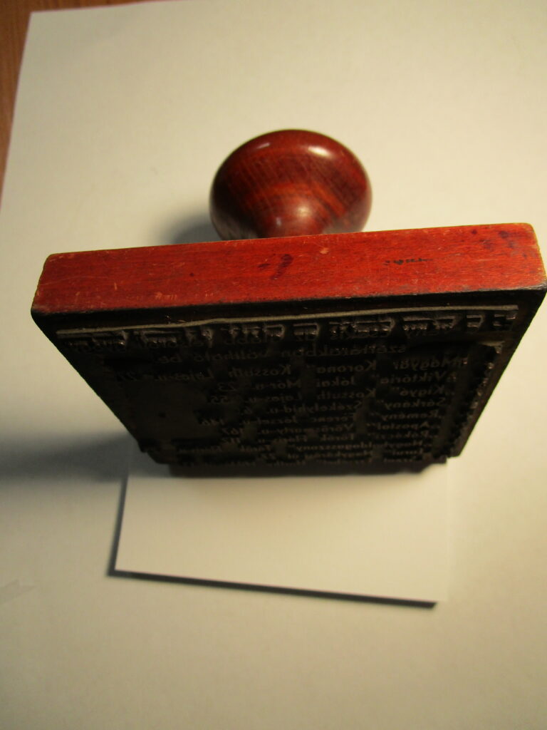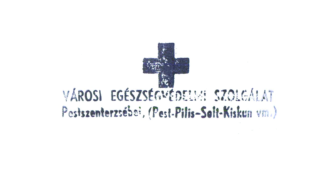 23 darab egészségügyi bélyegzőnk legfontosabb darabjai az Állatorvosi Hivatal, Tisztiorvosi Hivatal, Városi Egészségvédelmi Szolgálat, a Mentőállomás használatában voltak korábban. Izgalmas az a nagy méretű bélyegző, mely a vény kiváltóját arra kötelezi, hogy a Pesterzsébeten működő tíz gyógyszertár egyikében válthassa ki gyógyszereit. Ennek felirata a következő: