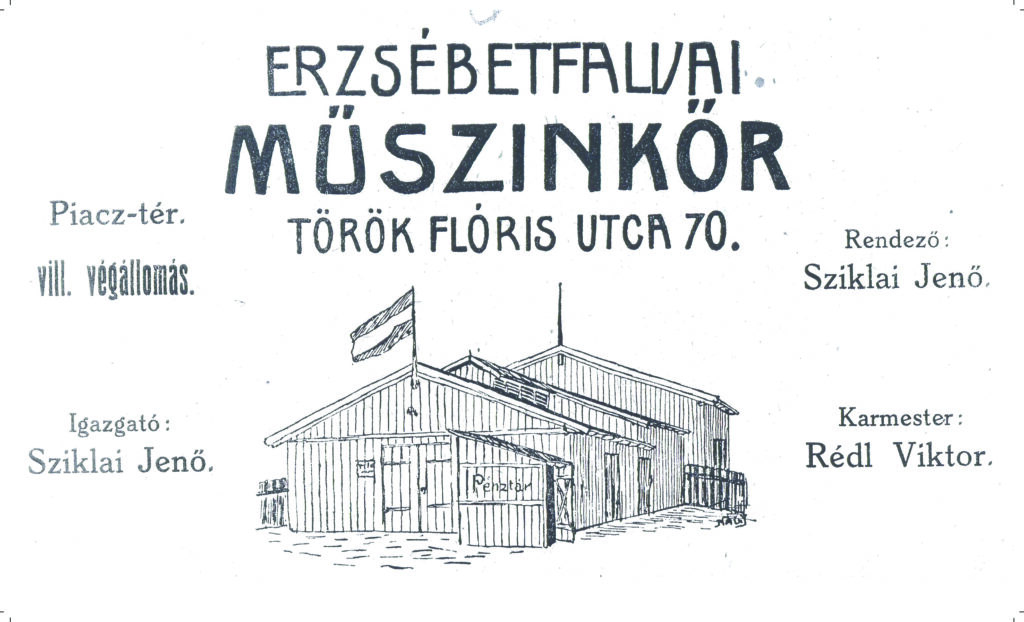 Sziklai Jenő színigazgató 1910 tavaszán érkezett a nagyközségbe és le is telepedett ott feleségével Havasi Emma színésznővel és nevelt fiával, ifj. Békefi Lajossal. Az általa felépített Erzsébetfalvai Műszínkörben kezdték el az 1910-es nyári évadot a Török Flóris utca 70. (majd 78.) szám alatt. Az épület tulajdonosa Pomekács Samu fegyvergyári mester volt. Műsoraik tulajdonképpen a városligeti Magyar Műszínkör erzsébetfalvai másolatai voltak. Az 1910/11-es téli szezonra a Vörösmarty- és Nagy Sándor utca sarkán található Luneznik vendéglőbe költöztek. 1911 nyarán Sziklai Kabaré néven a Luneznik-ben, majd az Uránia mozgó színházban játszottak. Az 1911/12-es téli szezonban a kabaré visszaköltözött jól megszokott helyére, a Luneznik-féle vendéglőbe.