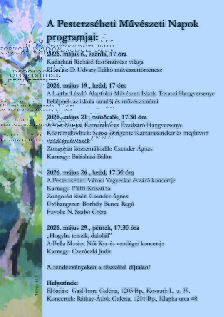 2026. április 29-május 29-ig. Előadás helyszíne: Gaál Imre Galéria Koncertek helyszíne: Rátkay-Átlók Galéria A belépés díjtalan!
