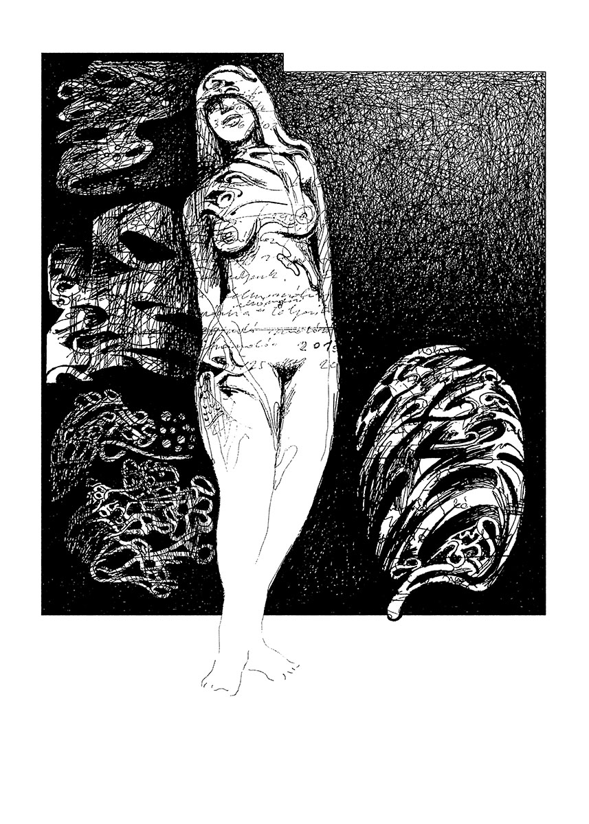 A művész nem az általában szokásos narratív közelítésmóddal dolgozza fel a témát, célja a történelmi tragédia nemzeten túli, világtörténelmi méretben történő szemlélete. Ez a látásmód lehetőséget ad arra, hogy saját történelmi drámánkat az emberiség történetének folyamán számtalanszor megtörtént tragédiákkal együtt, közös élményként éljük át. Nem vállalkozik magyarázatokra, értelmezésekre, csak számtalan kérdést tesz fel a szemünk előtt lüktető fegyelmezetten átgondolt ám mégis szürrealisztikusan szabad ívű rajzfolyamban.